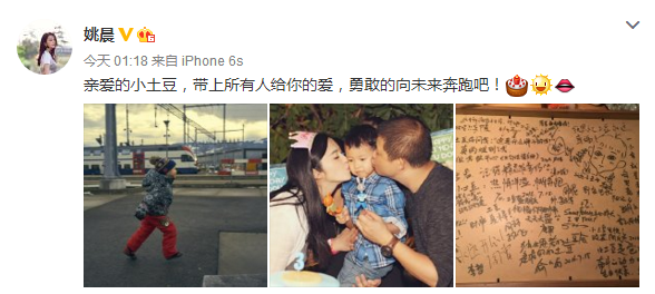姚晨夫妇为儿子庆生 吕秀才喻恩泰送祝福