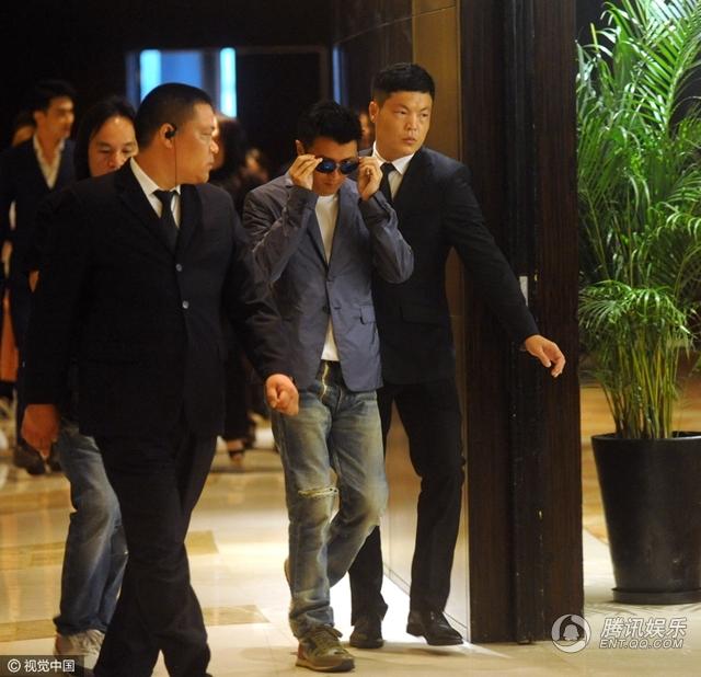 视觉中国2016年7月14日讯 上海,日前,谢霆锋在众多保镖及工作人员簇拥下出席活动,一路上霆锋做着眼保健操看上去很疲惫的样子,见到镜头霆锋马上带上墨镜快步走进会场。
