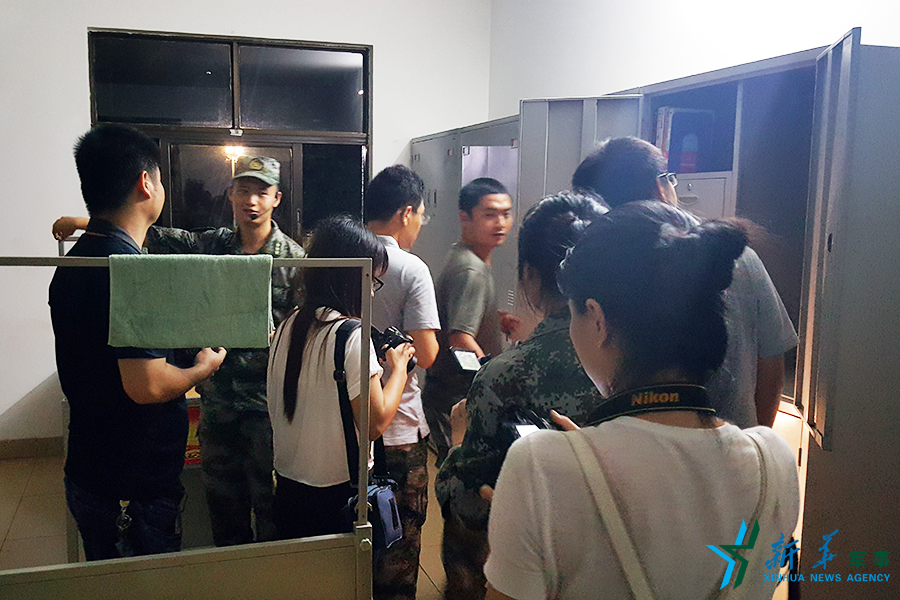 网络名人以及媒体代表参观连队营区、内务设施。李朋芳 摄